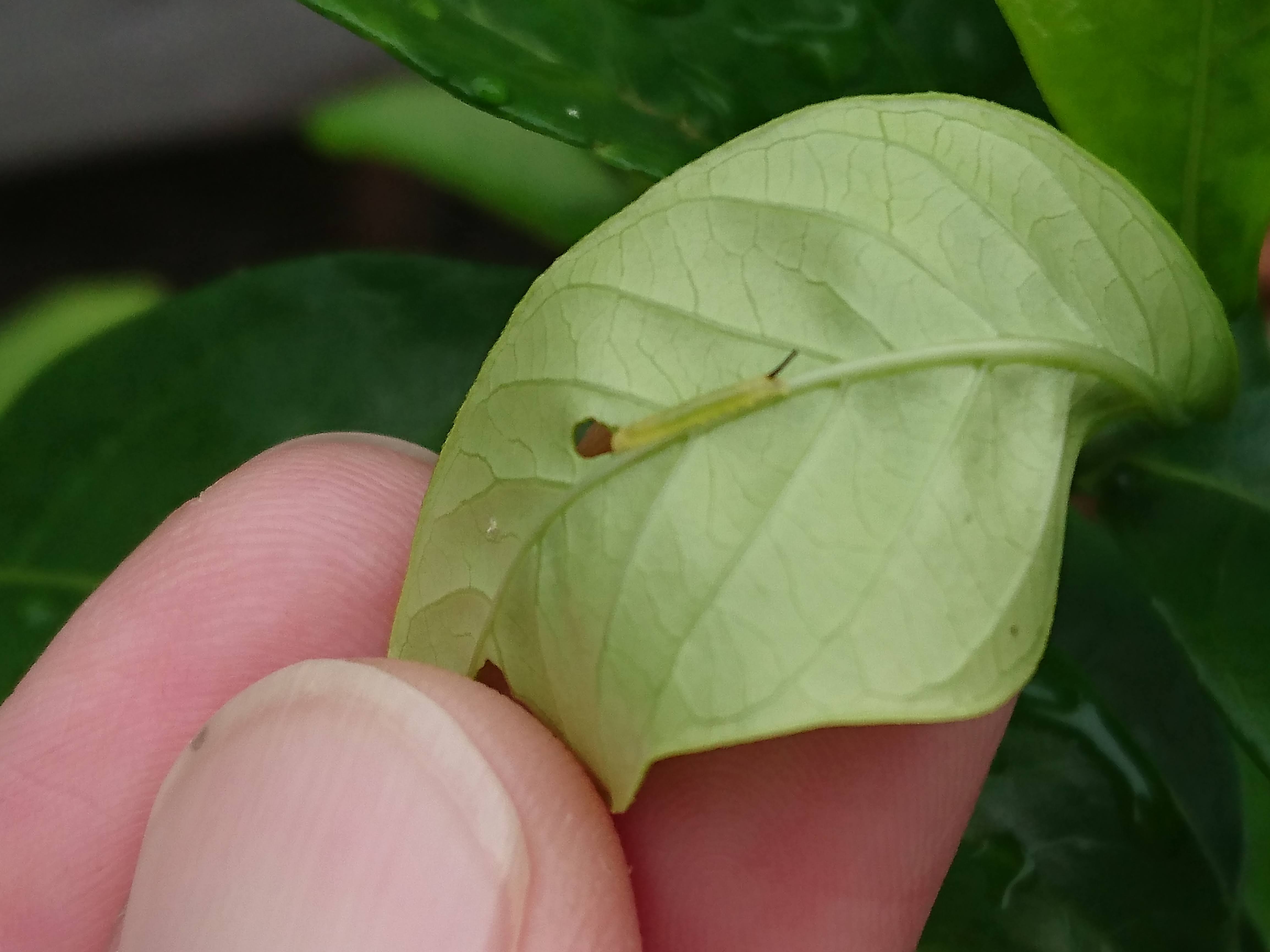 クチナシの葉っぱが食べられていたので 散歩のついでに