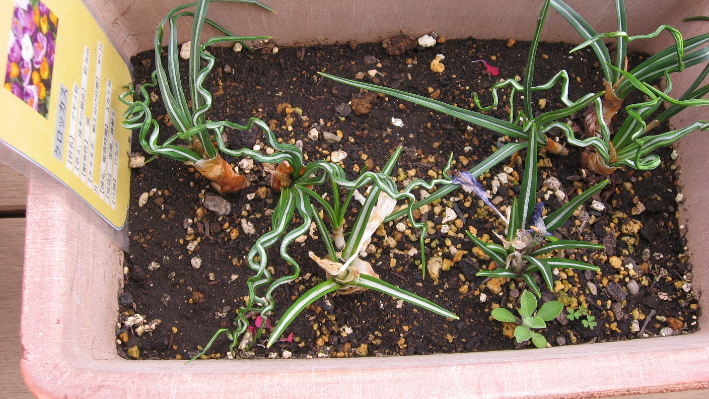 クロッカス 葉は細長く地表近くで白黄色紫等の6弁花が咲く クロヅル 葉は卵形花は緑白色で果実には広い翼が3枚ある クロバナヒキオコシ 暗紫色の唇形花がまばらにつきその下唇が突き出す クロブナ イヌブナ の別名.