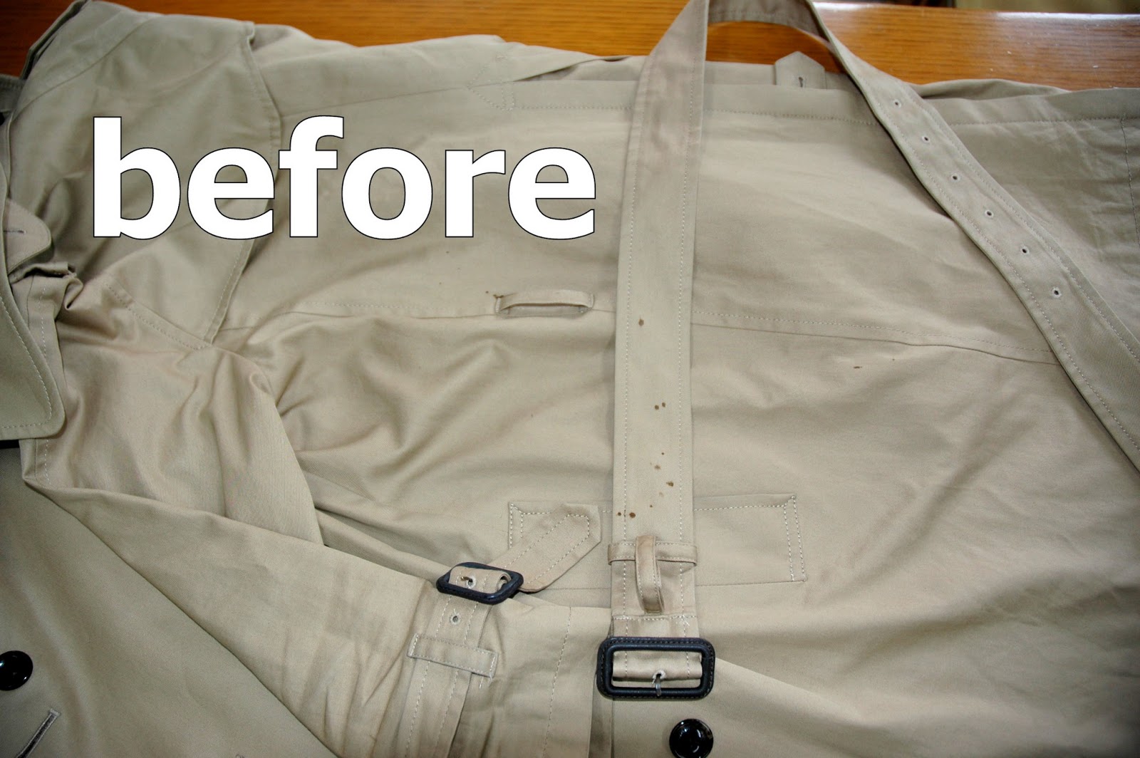 トレンチコートのシミ 千葉県旭市のフタバクリーニングです お洋服や着物 シミ抜きだってできちゃいます