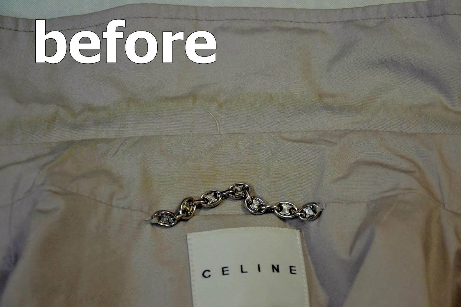 千葉クリーニング商会 ワークステーション便り トレンチコート 焼肉のたれ染み抜き実例