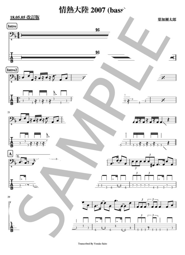 情熱大陸 葉加瀬 太郎 ベース タブ譜 Bass Score