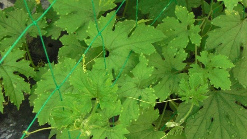 ゴーヤの葉っぱの斑点模様 写真あり 最初 下の方の葉がこのように Yahoo 知恵袋