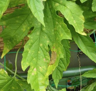 ゴーヤの病気 炭疽病 ゴーヤの葉に黒い斑点が出ました 猫と園芸