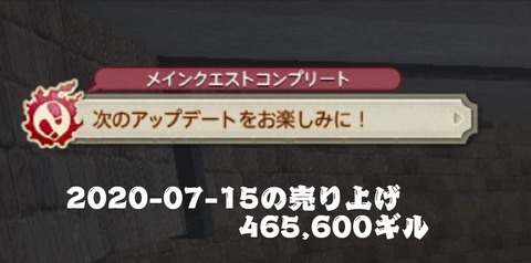 2020 07 15の売り上げ 465 600ギル Ff14で一億ギルを貯める計画