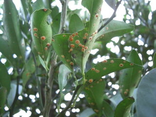 シークワーサーを植えています 今年葉っぱのうらにオレンジ色の斑点みたい Yahoo 知恵袋