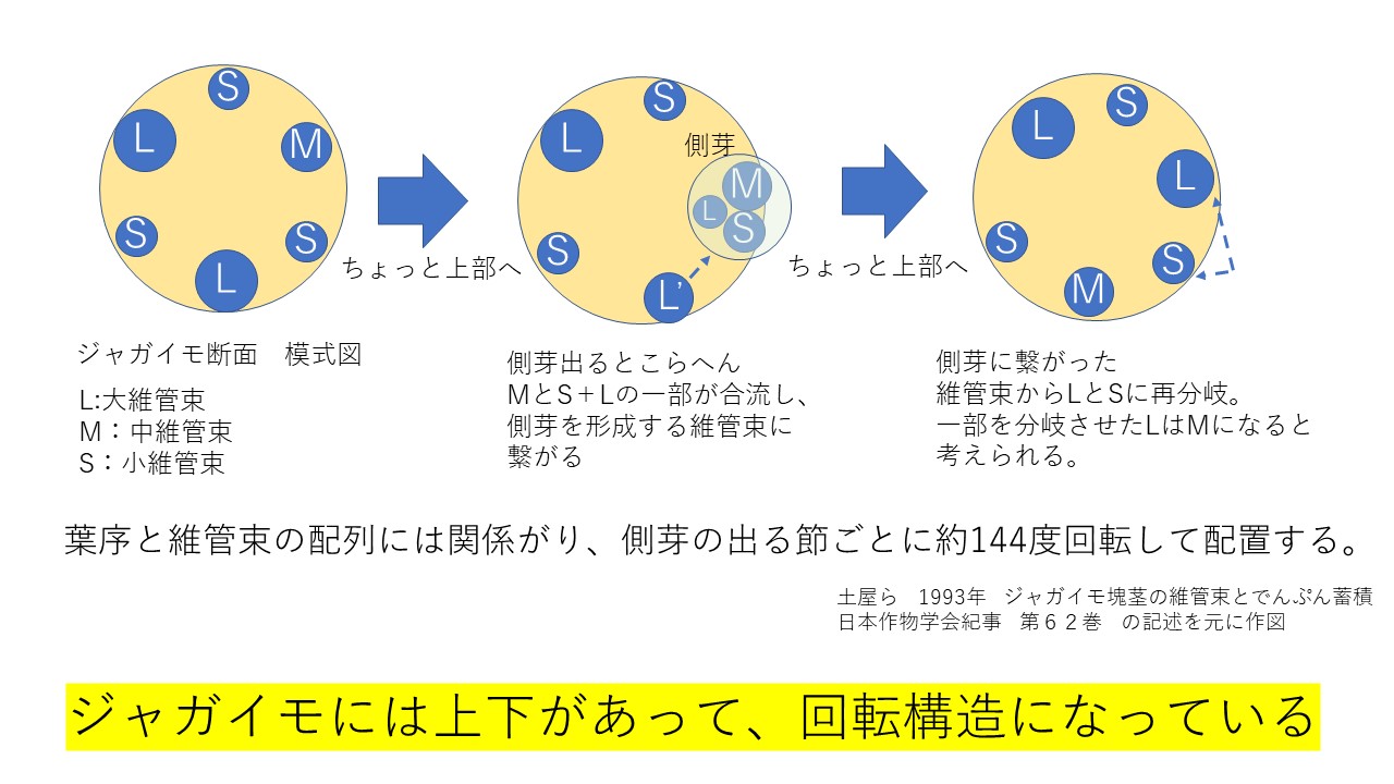 植物顕微鏡写真 趣味 On Twitter これ構造的にどうなってんのかなーと思って調べたら ジャガイモに左右は無いけど 側芽が出るごとに約144度回転しているらしい 面白いなー 以下の文献を元にしました 土屋ら 1993年 ジャガイモ塊茎の維管束とでんぷん蓄積