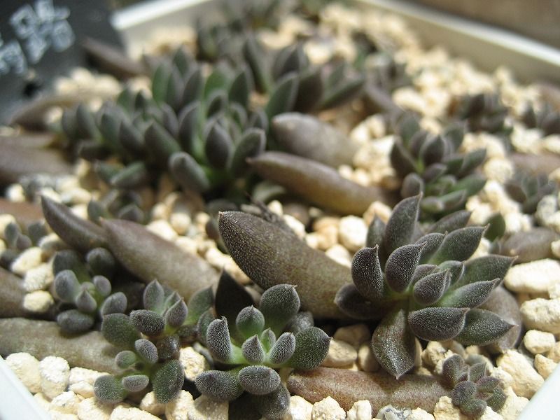 置き場所と管理の問題で センペルビウムはお外多肉になりつつあります できるだけ 外できっちり育てたほうが多肉はものすごくきれいだと思います 四馬呂 スマロ の葉挿しで大きくなった株です 親株は花が咲いて去年枯れてしまったあと こぼれ落ちた葉っぱで増え