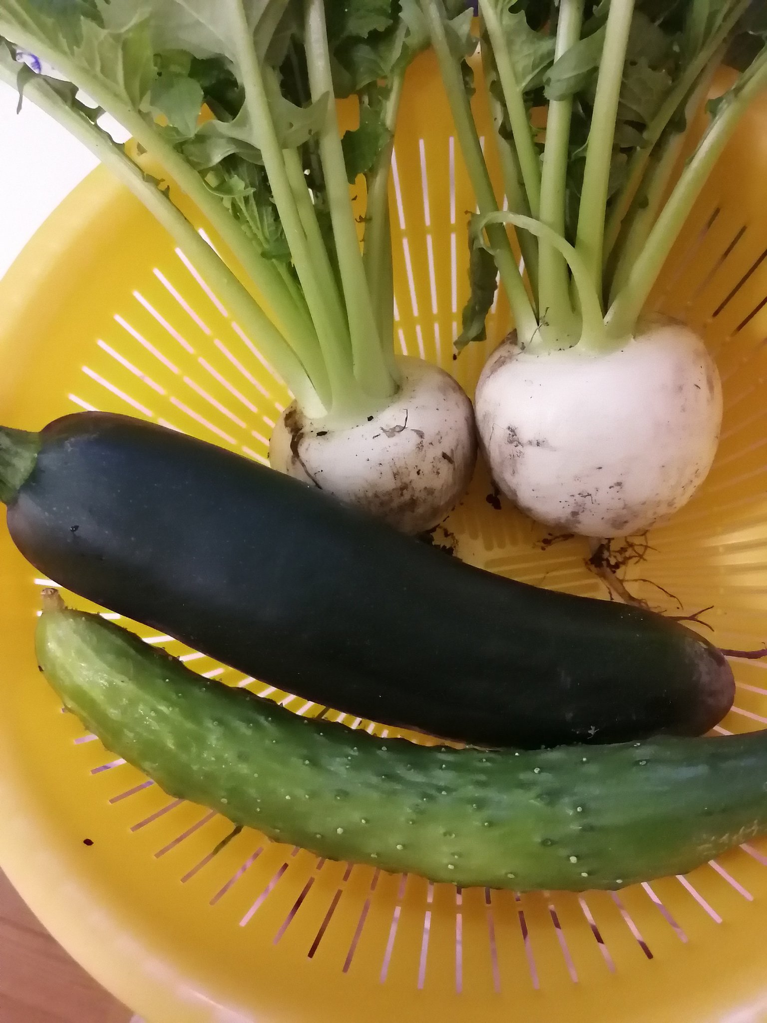 ট ইট র ほたん 今日の収穫 カブ ズッキーニ きゅうり 頂き物苗のキャベツ ズッキーニは自分で育てた苗の 細々の色の薄い 苗だったから 心配してたけど立派な実がついた 感動 キャベツもすごく綺麗なの 葉物は難しいと思ってたから 驚き きゅうり