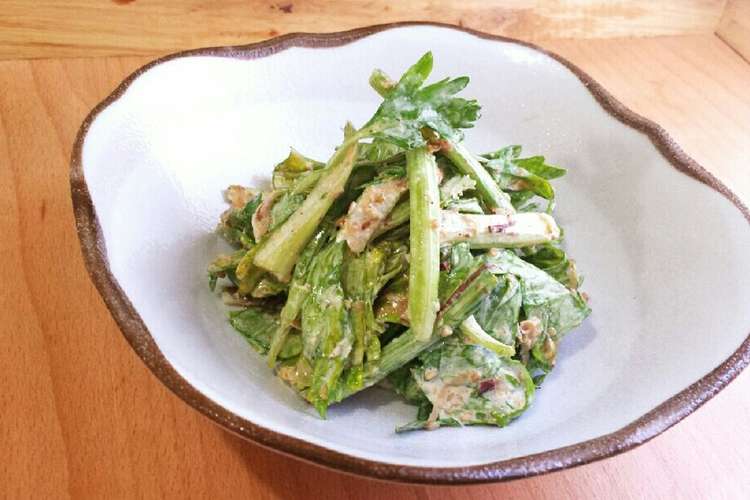 かんたん セロリ葉っぱごとゴママヨ和え レシピ 作り方 By みきぐま クックパッド