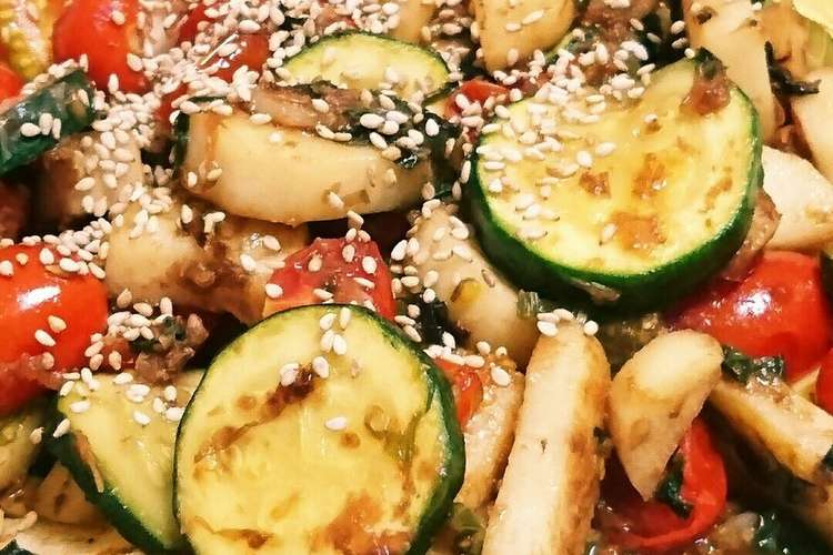 ズッキーニ プチトマト 長芋めんつゆ炒め レシピ 作り方 By おまたんlabo クックパッド
