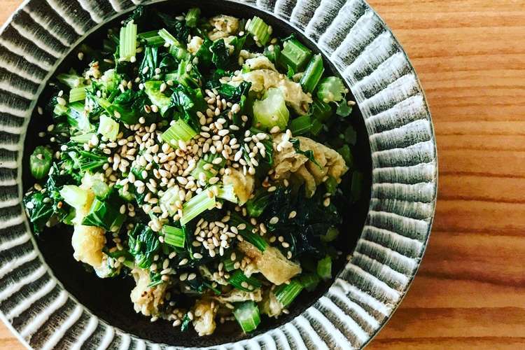 糖質制限 セロリ葉と油揚げの炒め物 レシピ 作り方 By とっちん0419 クックパッド