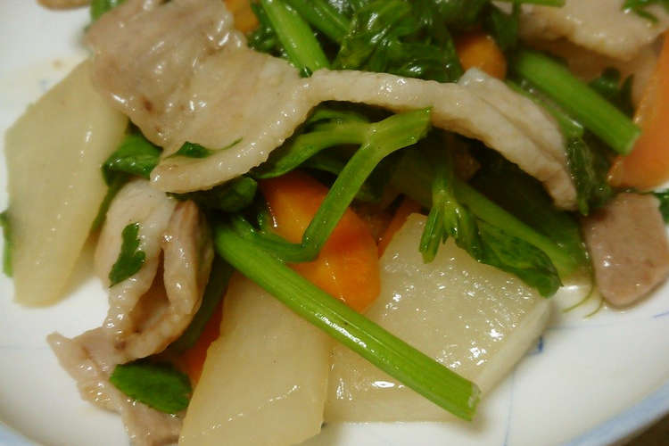 セロリの葉と豚バラと大根の中華風炒め レシピ 作り方 By 里ちんママ クックパッド