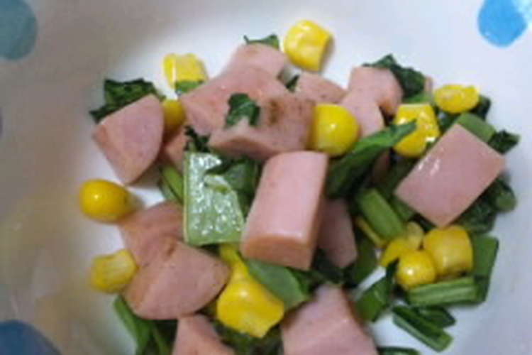 魚肉ソーセージとコーン カブ葉の炒め物 レシピ 作り方 By 神河 由実 クックパッド
