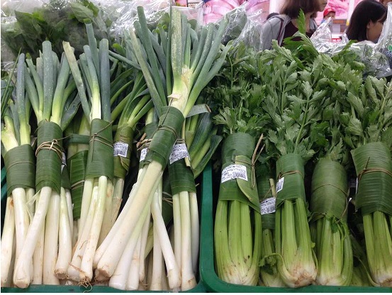 ベトナム ホーチミンのスーパーにある野菜のコーナー 包装にバナナの葉が使われている vna 共同 写真 西日本新聞ニュース